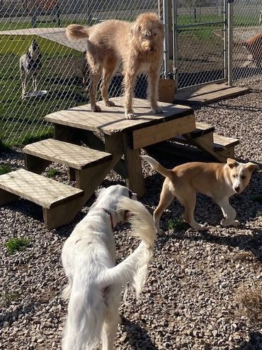 With 10 indoor/outdoor kennels, each guest receives lots of individual attention. Our kennel suites are spacious and comfortable. We take pride in the cleanliness and in the personal care and connection that is made with every guest and owner. Each guest becomes one of our own. We welcome canines of all ages and sizes: puppies, seniors, dogs with disabilities, large and small. We ensure each guest gets what they need!